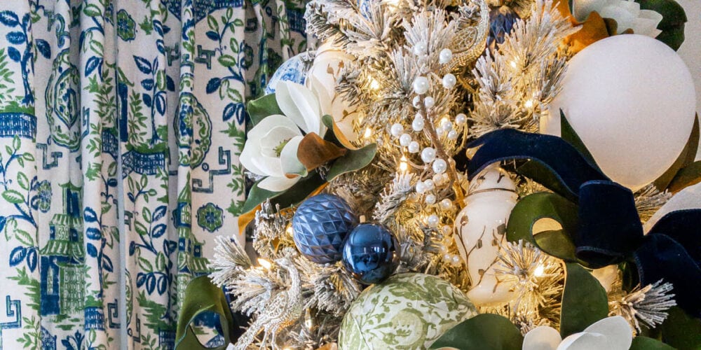 Blue, White, and Green Chinoiserie Christmas Tree (Dining Room)