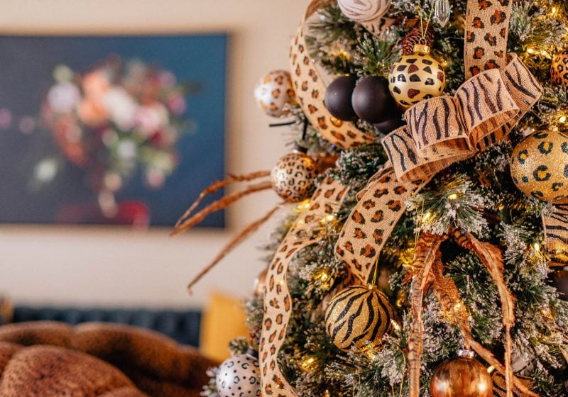 Last year, I added another tree to the collection. My formal living room had some animal print chairs, and I thought it would be so fun to have an animal print Christmas tree. Elegant, but playful. Is that a thing?! Here’s how I put it together.