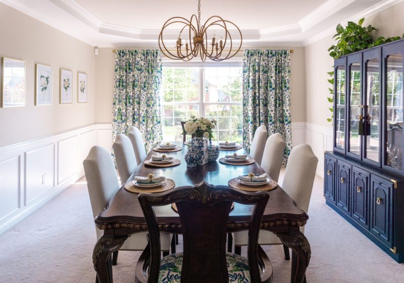 When we bought this house 3 years ago, I knew I’d eventually want to add my own touch to the dining room, but it wasn’t a priority. Thanks to extra time on my hands, I finally got around to it. Here’s the before and after.