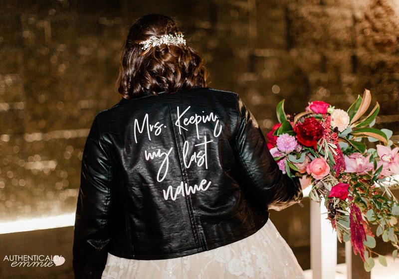My favorite DIY project from my wedding was a custom moto jacket that had removable wording. Here’s how I made it!